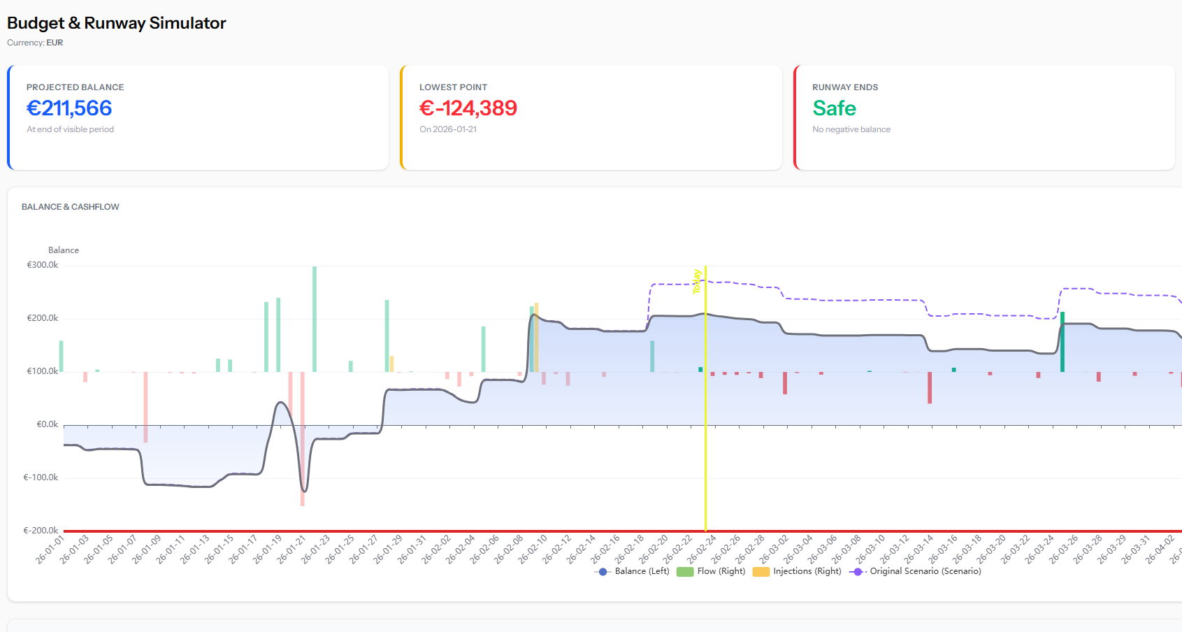 Set an initial balance and record capital injections to anchor projections.